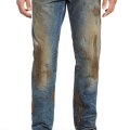 Heavily distressed medium-blue denim jeans in a comfortable straight-leg fit embody rugged, Americana workwear that’s seen some hard-working action with a crackled, caked-on muddy coating that shows you’re not afraid to get down and dirty… Purchase here. $425 and covered… Read More ›