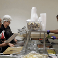 All of the people serving food are prisoners